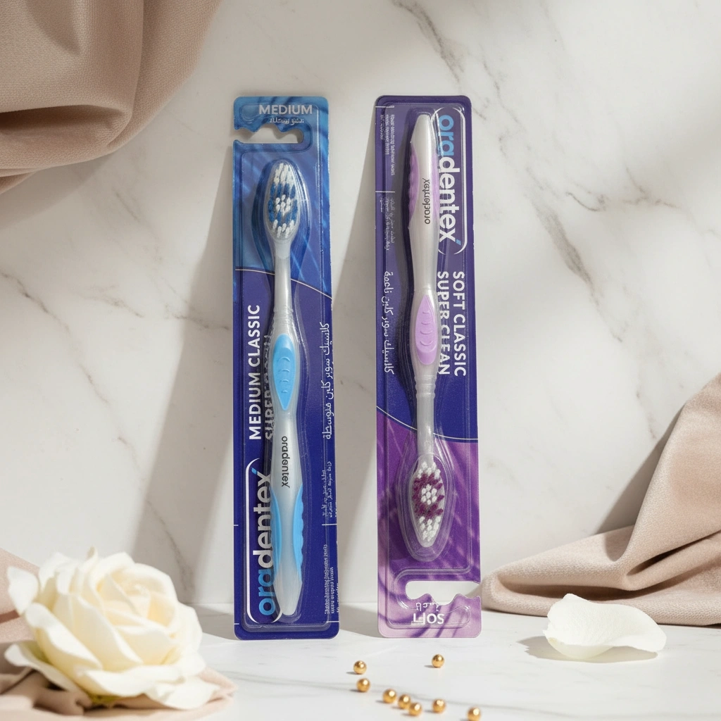 Soft bristles Classic Super Clean toothbrush gently removes plaque for daily fresh smile.